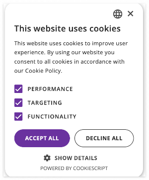 consent 설정을 했다면 Cookie Script와 같은 쿠키 배너 서비스를 이용해서 간편하게 쿠키 동의 배너를 지정할 수 있다.