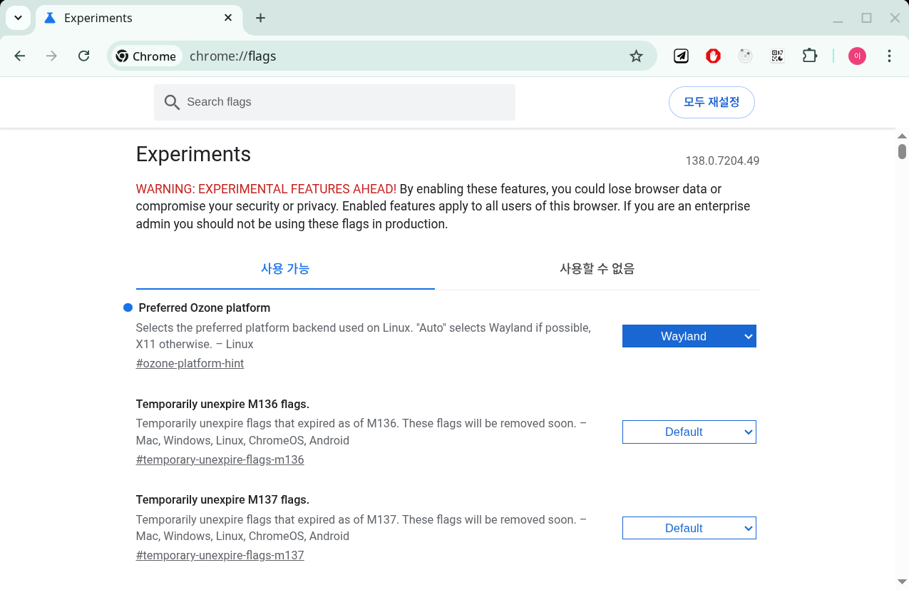 Chrome이랑 Chromium은 주소창에 "chrome://flags" 들어가서 "Preferred Ozone platform"으로 Wayland를 선택해주면 된다.