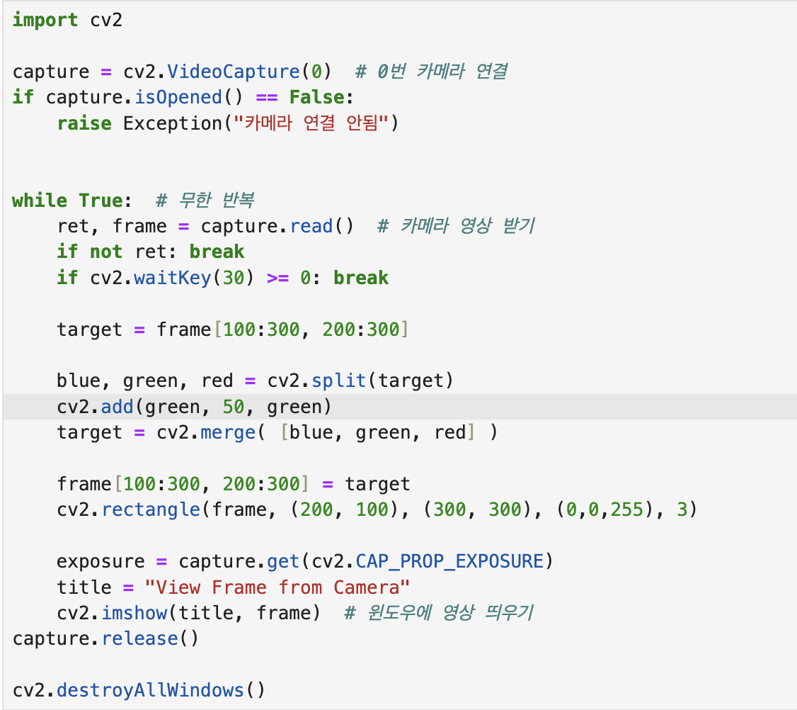 if add_value > 0 : image = image + add_value # 행렬과 스칼라 덧셈 수행