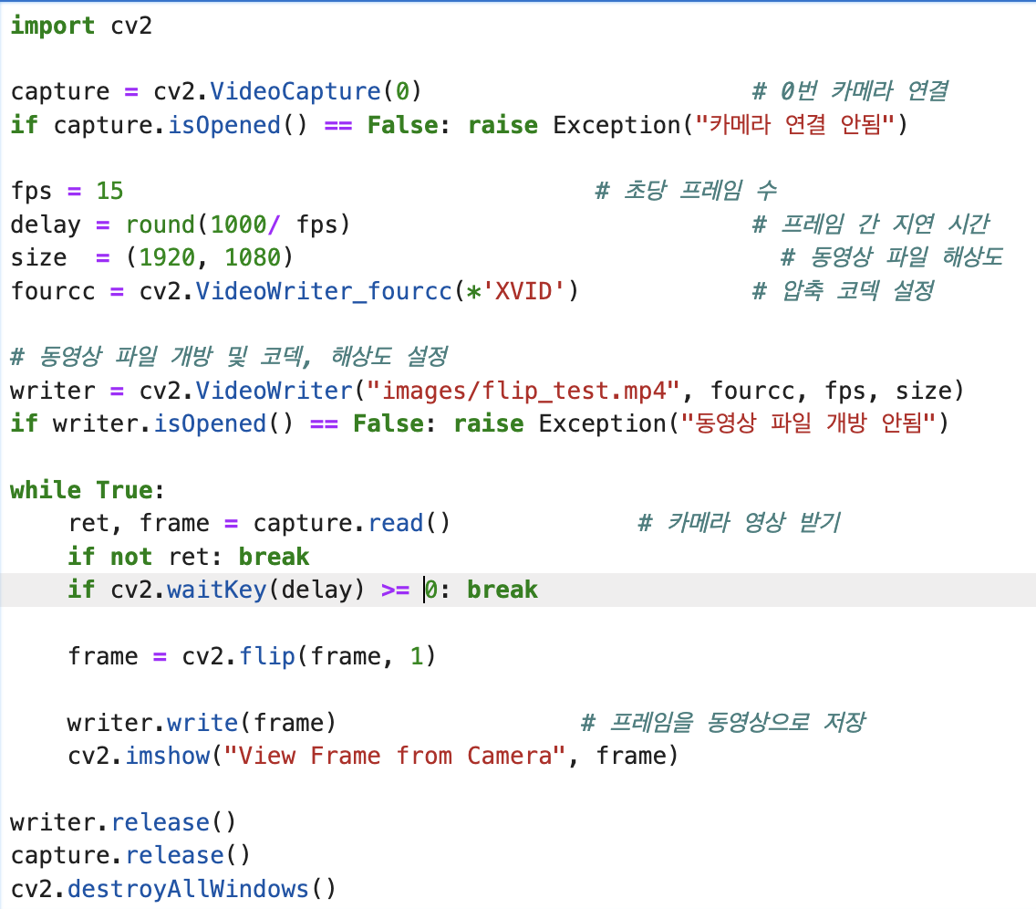 key = cv2.waitKeyEx(100) # 100ms 동안 키 이벤트 대기