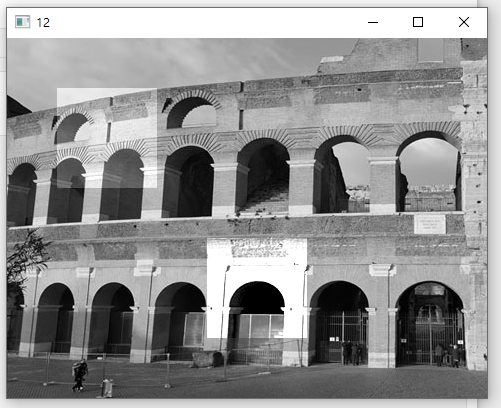 | image = cv2.imread('images/abs_test1.jpg', cv2.IMREAD_GRAYSCALE) if image is None: raise Exception("영상파일 읽기 오류") mask1 = np.zeros(image.shape[:2], image.dtype) cv2.rectangle(mask1, (50, 50, 100, 100), 255, -1) cv2.add(image, 50, image, mask1) target = image[200:300, 200:300] noimage = np.zeros(target.shape[:2], target.dtype) avg = cv2.mean(image)[0]/2.0 target = cv2.addWeighted(target, 2.0, noimage, 0, -avg) image[200:300, 200:300] = target cv2.imshow("12", image) cv2.waitKey(0) cv2.destroyAllWindows() |