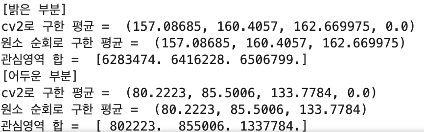10. PC 카메라로 영상을 읽어서 특정 부분(관심 영역)의 합과 평균을 구하는 프로그램을 작성하시오.